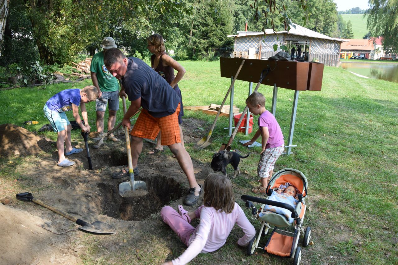 Ti, kdo čtou pravidelně články Permoníku, vědí, že koncem června proběhla v Dolním Podluží bitva o koupaliště, ve které zvítězila První dolnopodlužská brigáda pod velením brigádního generála paní Ivy. Jelikož se nevyplácí usnout na vavřínech v opojení z prvního vítězství, rozhodla se brigáda útok zopakovat a dalším vítězstvím utvrdit svoji pozici. Cílem byla tentokrát odlehlá strana koupaliště, na které se nachází ještě další malý rybník. Pamětníci vzpomínají na dobu, kdy v oněch místech byla umístěná lavička označovaná jako „líbací“. Dnes by si milenci odnesli tak maximálně pár klíšťat z vysoké trávy, případně ne moc sexy škrábance od hustého, místy neprostupného křoví. Takové křoví, to je panečku nepřítel. Zvlášť, když je ho hodně. A že ho hodně bylo. Ale příslušníci pozemní bojové jednotky vše důkladně vyřezali, vyhrabali a odvezli. Kromě pozemních jednotek bylo nezbytné zformovat i jednotku podzemní, a to z důvodu hloubení základu pro novou „líbací lavičku“. Vojíne Řího, Nožičko, Formánku, za takové nasazení vás povýšení nemine! Kromě té líbací byla usazena ještě další lavička pod břízou u ohniště. Byla také odstraněna všechna torza betonových sloupků s nebezpečným drátem. Stejně jako minule i tentokrát se polní kuchyně postarala o posilnění všech bojovníků, kteří za to byli moc rádi. S blížícím se koncem útoku bylo víc a víc patrné, že nepřítel je poražen a prostor v zadní straně koupaliště a okolo druhého rybníka získává zcela jiný charakter. Dříve neprostupná džungle se změnila v hezký háječek s pěšinkou, radost pohledět. Ostatně přijďte se podívat…
